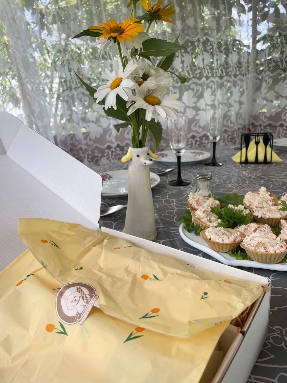 Баночка изготовлена вручную из глины. Материал полностью безопасен для употребление в ней любой пищи. Можно мыть в посудомоечной машине, но рекомендована ручная мойка.
