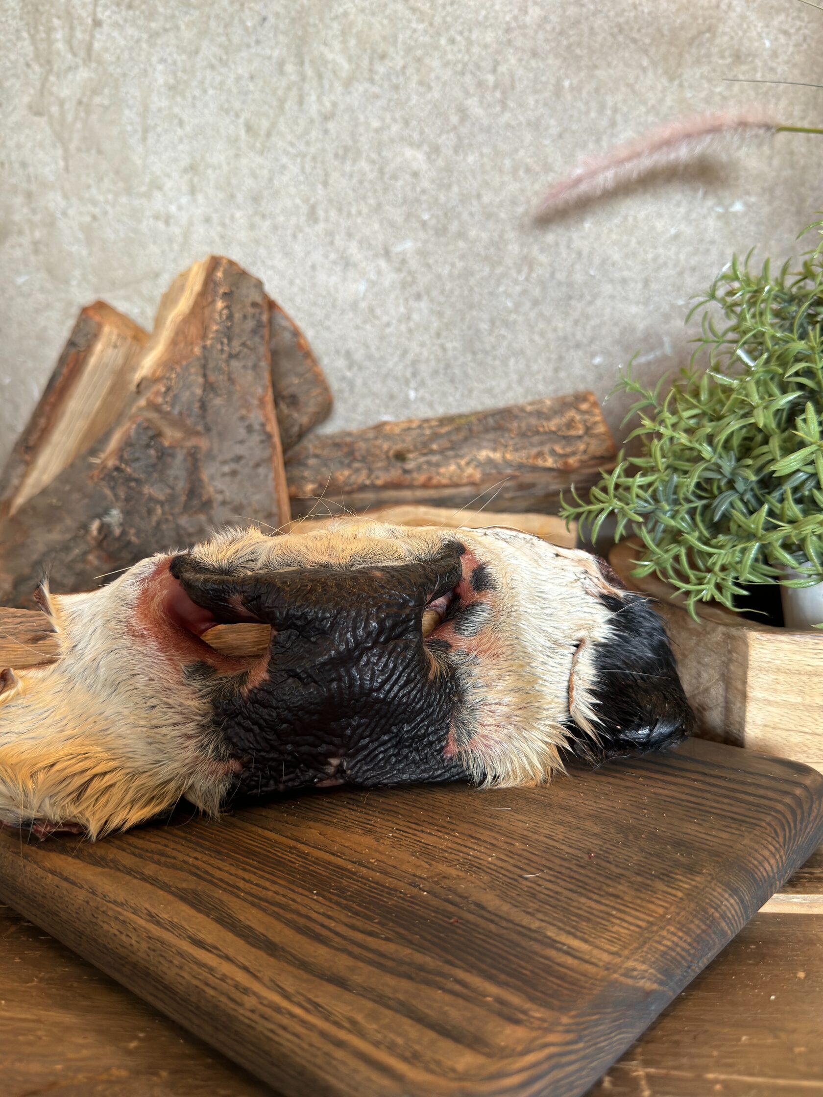 Состав: говяжий нос с шерстью. Рекомендация: отлично подойдёт для того, чтобы занять Вашего питомца на долгое время или же облегчить период смены зубов.